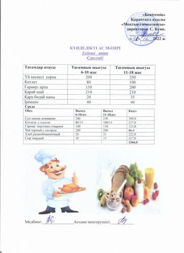 Оқушыларға арналған күнделікті ас мәзірі 2022-2023 оқу жылы