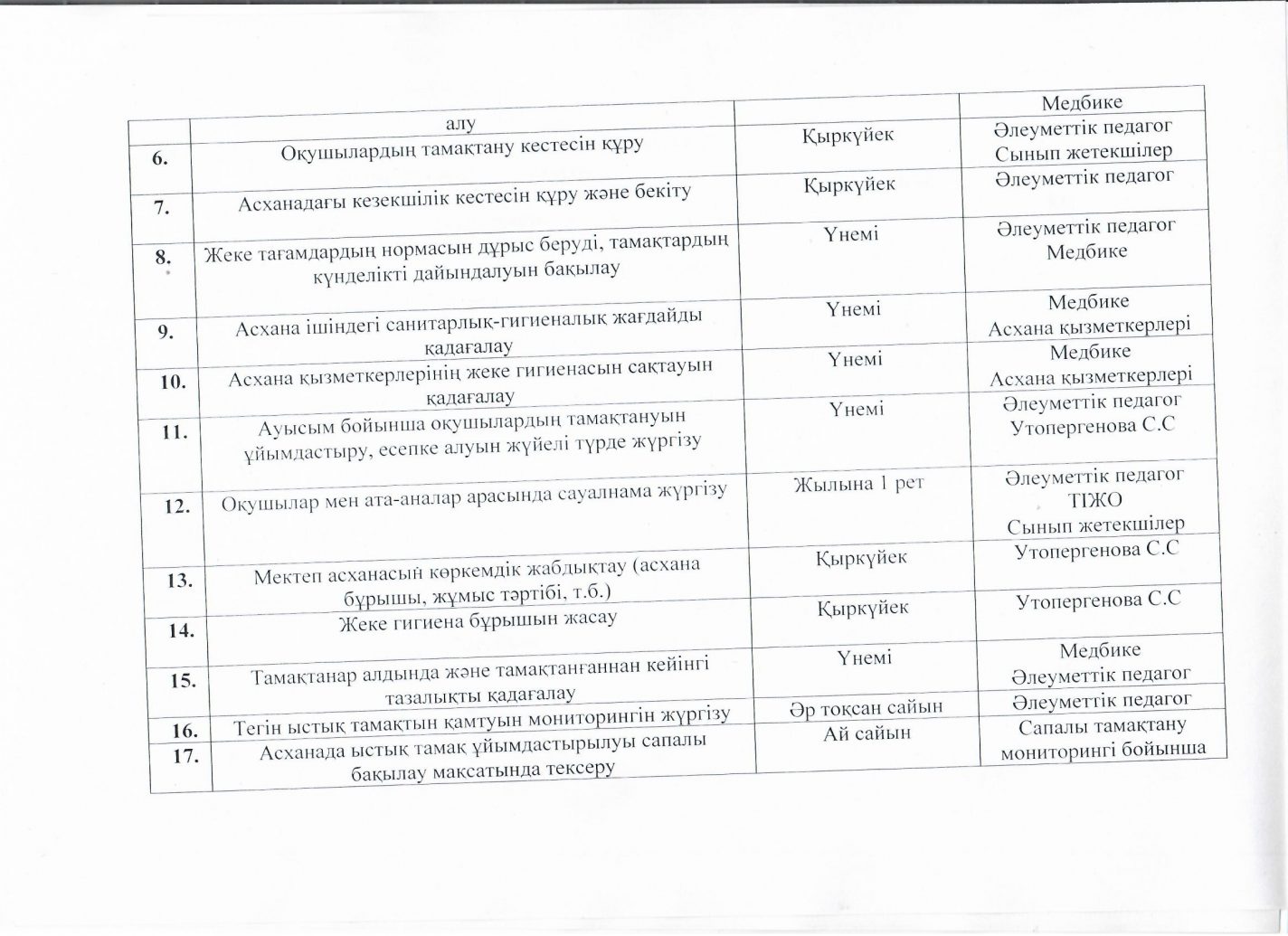 2021-2022 оқу жылында мектеп оқушыларының тамақтануын ұйымдастыру жұмыс жоспары